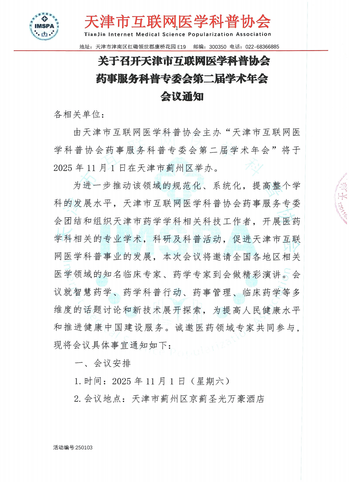 关于召开天津市互联网医学科普协会药事服务科普专委会第二届学术年会 会议通知