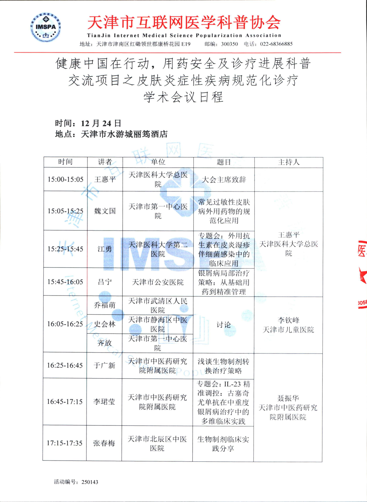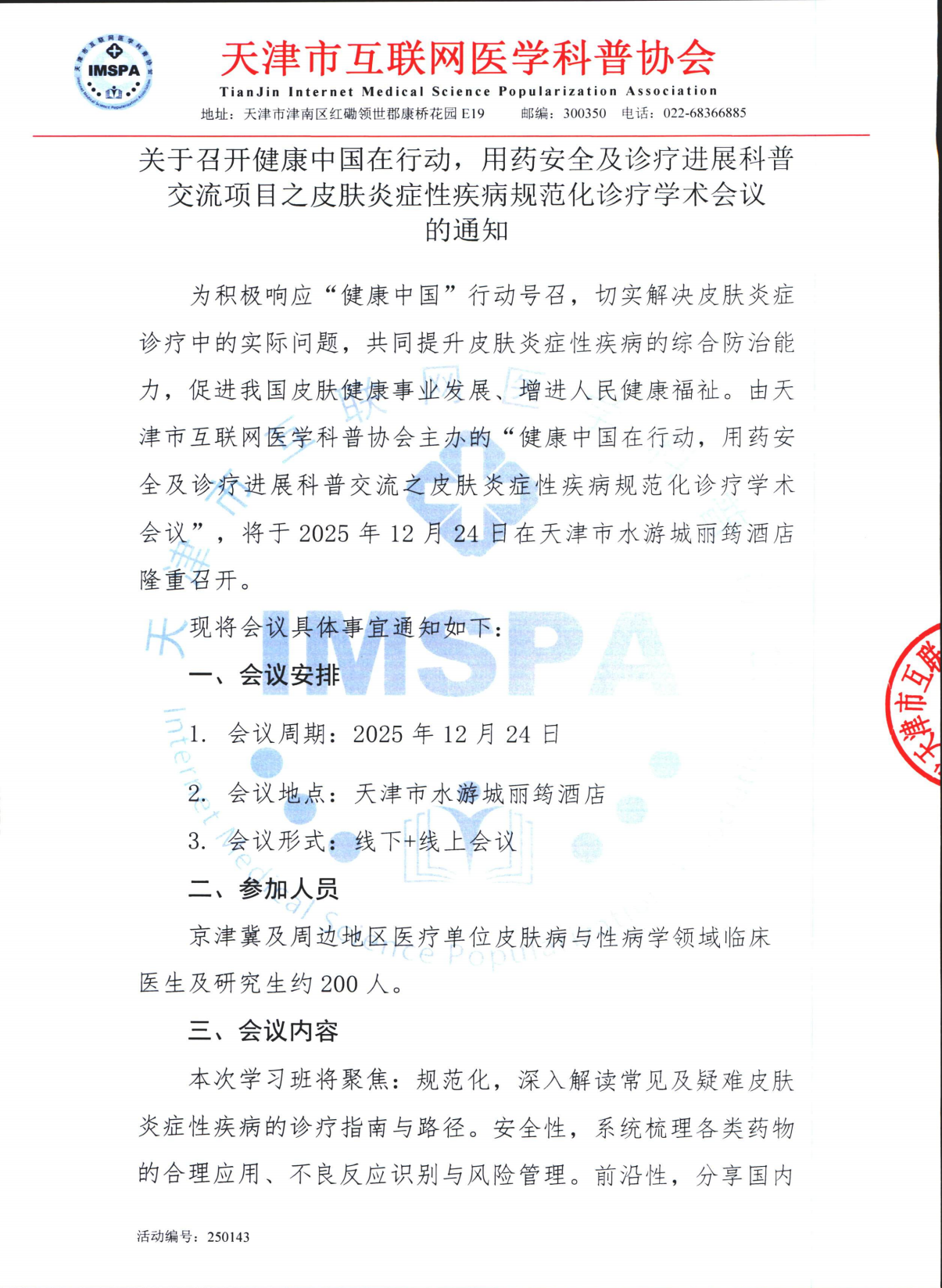 关于召开健康中国在行动,用药安全及诊疗进展科普交流项目之皮肤炎症性疾病规范化诊疗学术会议的合作函
