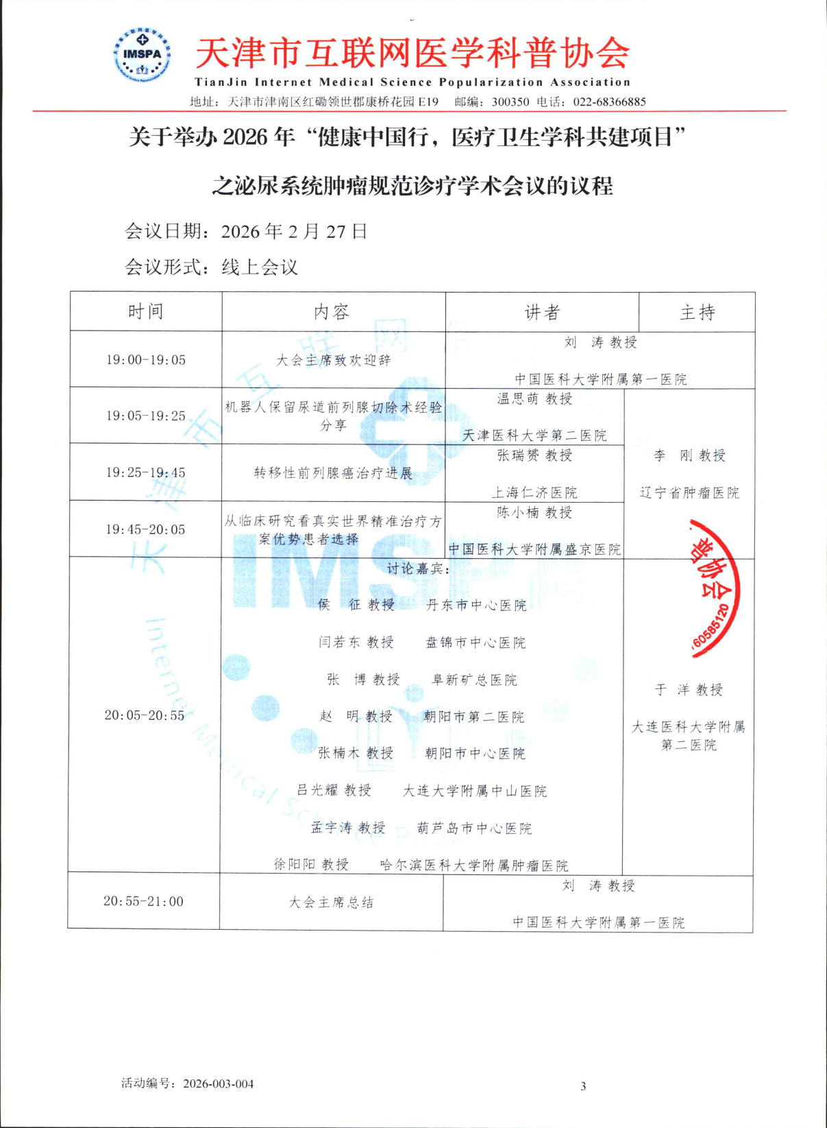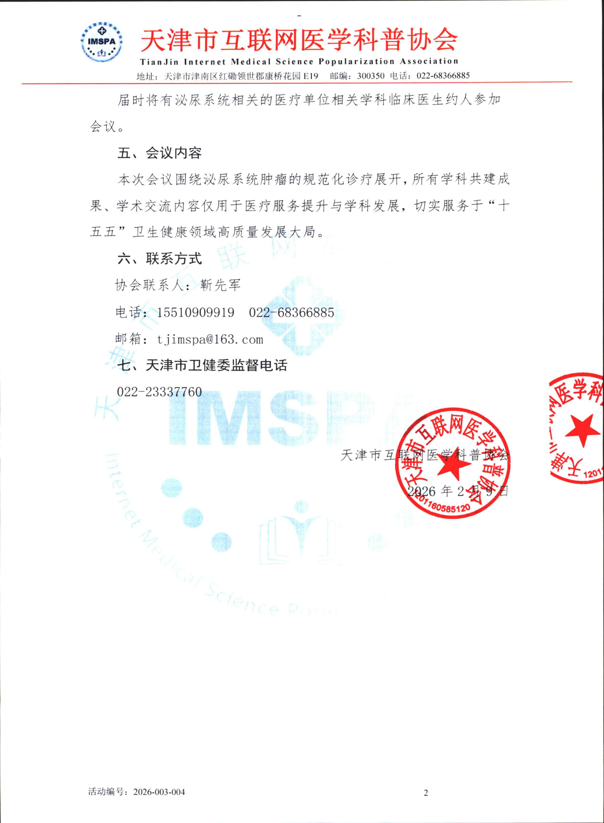 关于举办2026年“健康中国行,医疗卫生学科共建项目”之泌尿系统肿瘤规范诊疗学术会议的合作函