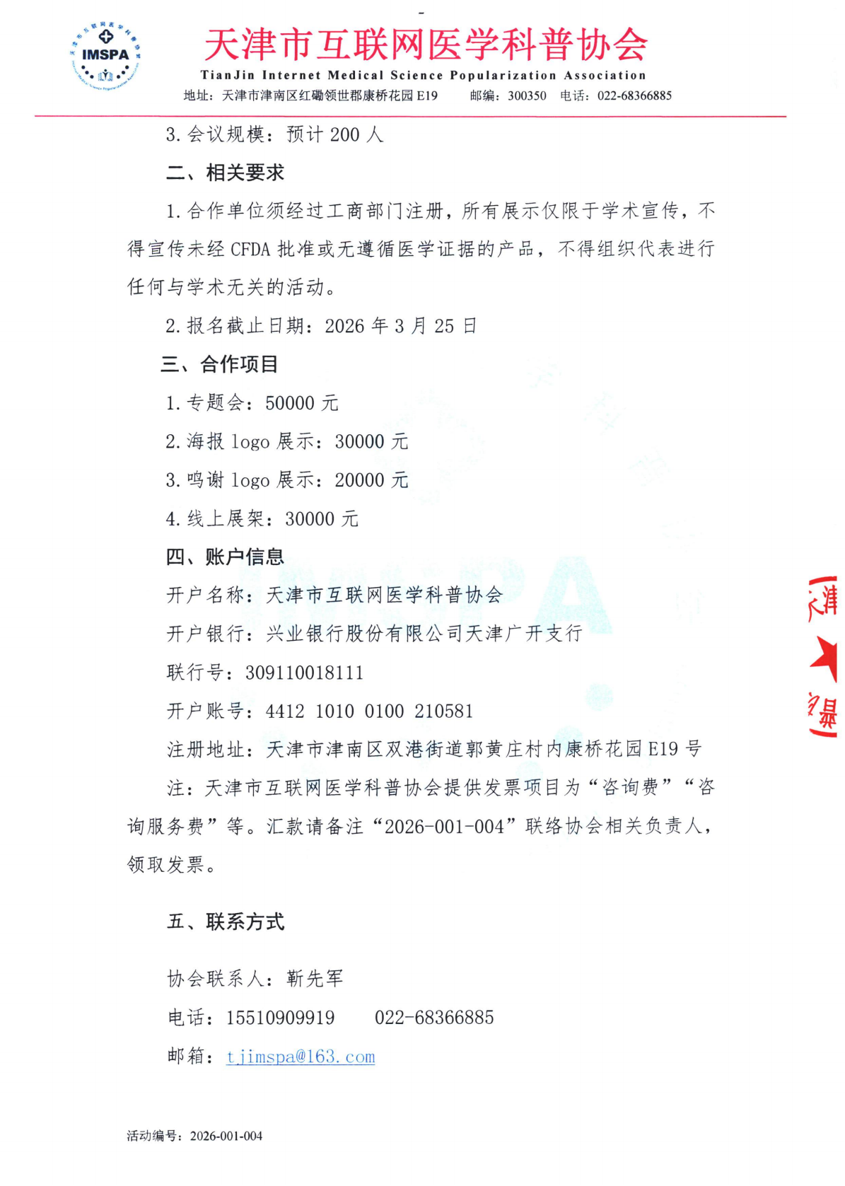 关于开展2026年健康中国在行动,用药安全及诊疗进展科普交流项目之肺部肿瘤精准治疗学术会议的合作函